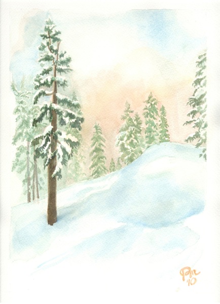 View of the forest atop Lookout Mountain, Northstar at Tahoe Resort, California. Painted in the atelier after a snapshot and recollection.